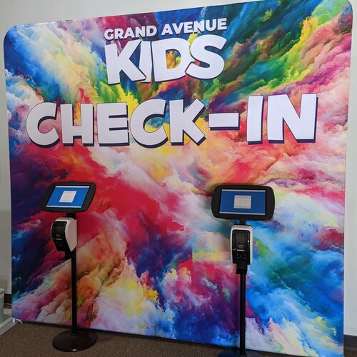 Before Service: After your initial visit, you can check in your child at the self check-in kiosk. Simply enter your phone number into the keypad and check in your child. You and your child will receive matching name tags that are exclusive to your family and your visit. Your child will need to wear the name tag portion while you hold on to the matching tag.